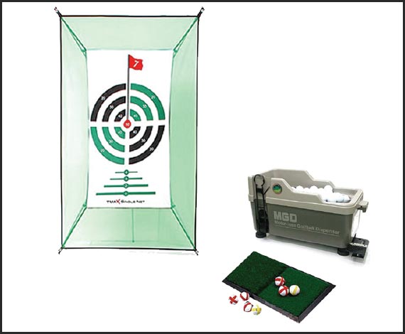 好評発売中のMGD(ボール配球機)とセットで使用すれば、1時間ほどの組み立て、設置で個人用のゴルフ練習場が誕生します。